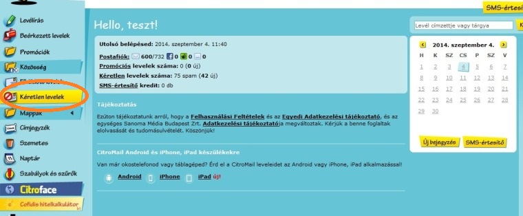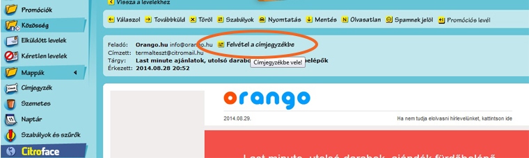 Citromail: Felvétel a címjegyzékbe