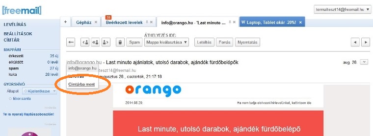 Freemail: címtárba mentés